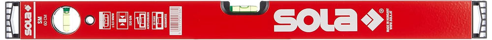 Sola SM RED - Wasserwaage aus Aluminium, 60 cm, mit 2 Luftblasen, Rot