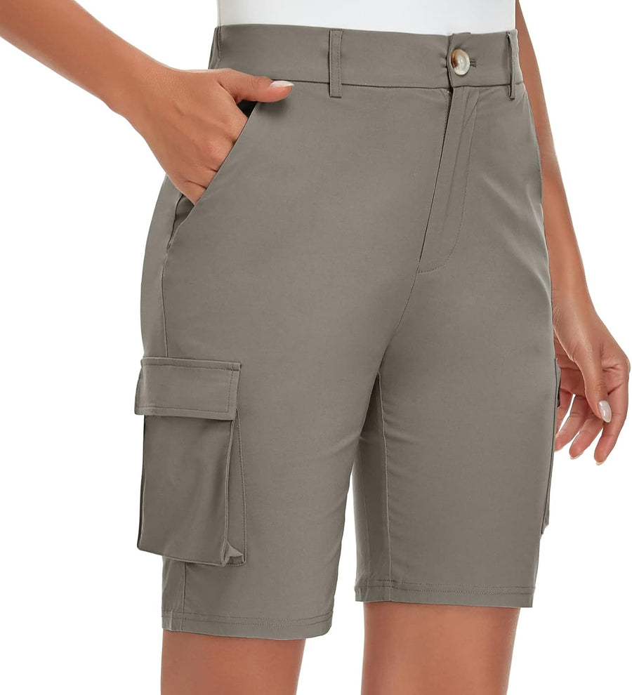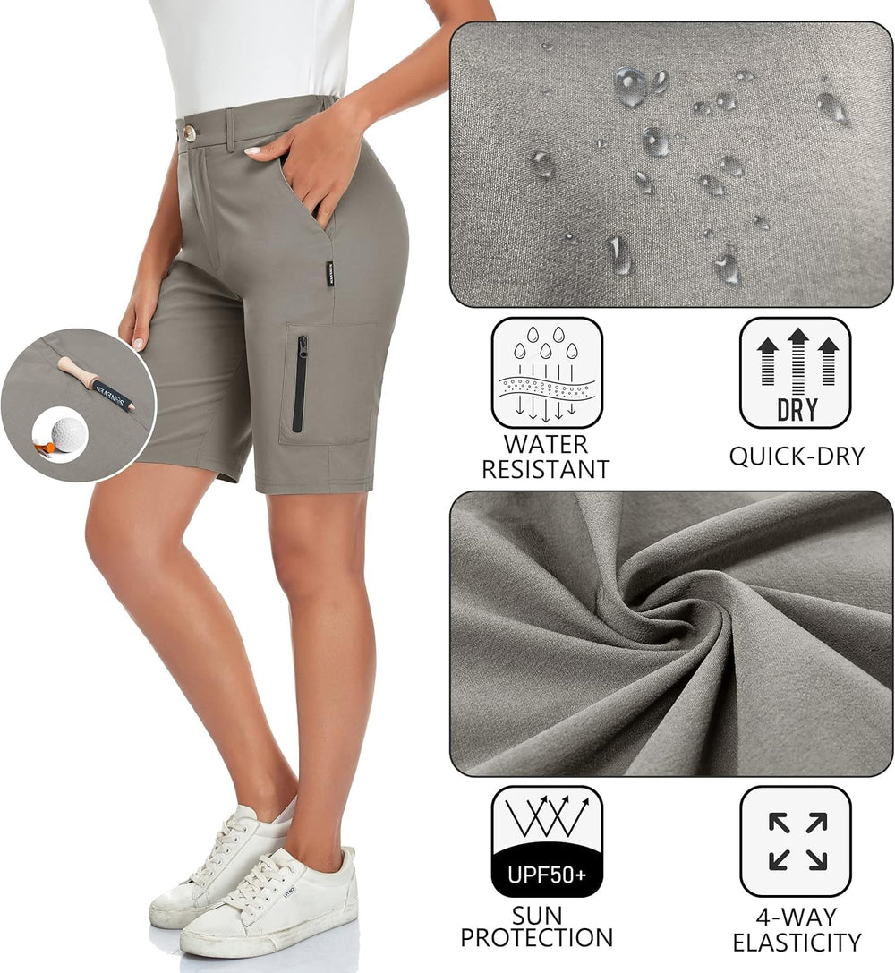 Soneven Stretch Damen Bermuda Shorts High Waist Leichte Cargo Shorts Wanderhose Kurz Zip Off mit Rei