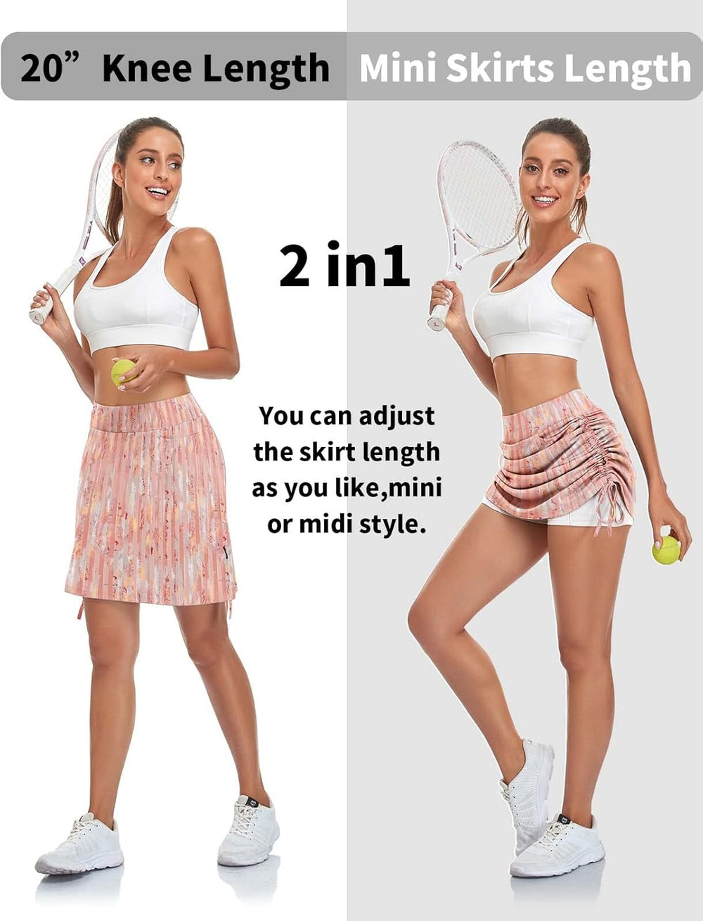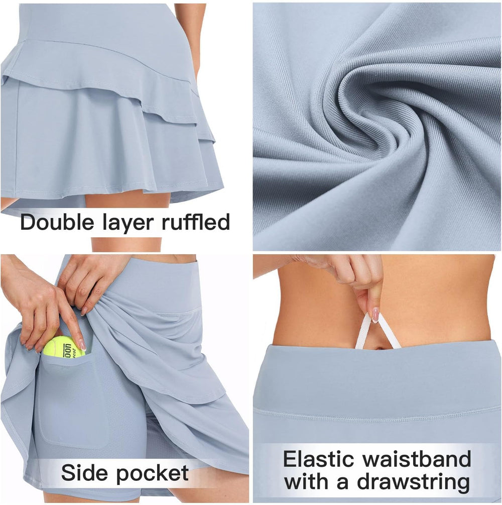 Soneven Hosenrock Damen Knielang Tennis Rock mit Hose Drunter Mädchen Pleated Wanderrock Sommer Spo