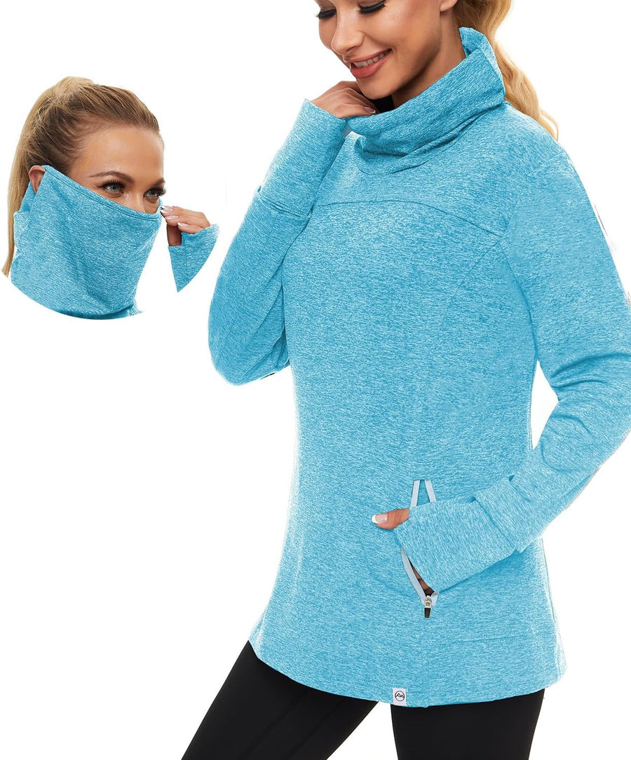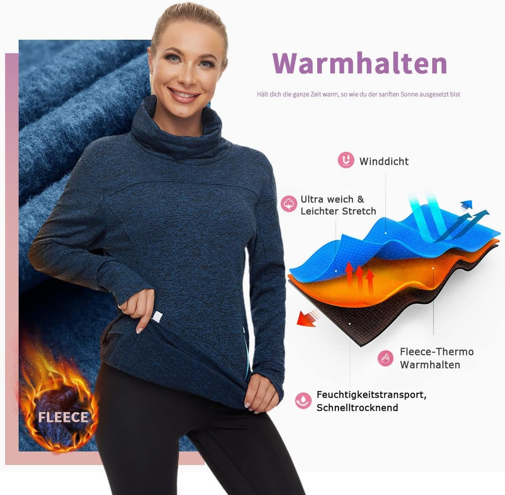 Soneven Rollkragen Pullover Damen Sweatshirt Damen Ohne Kapuze mit Taschen Funktionsshirt Langarm Sw