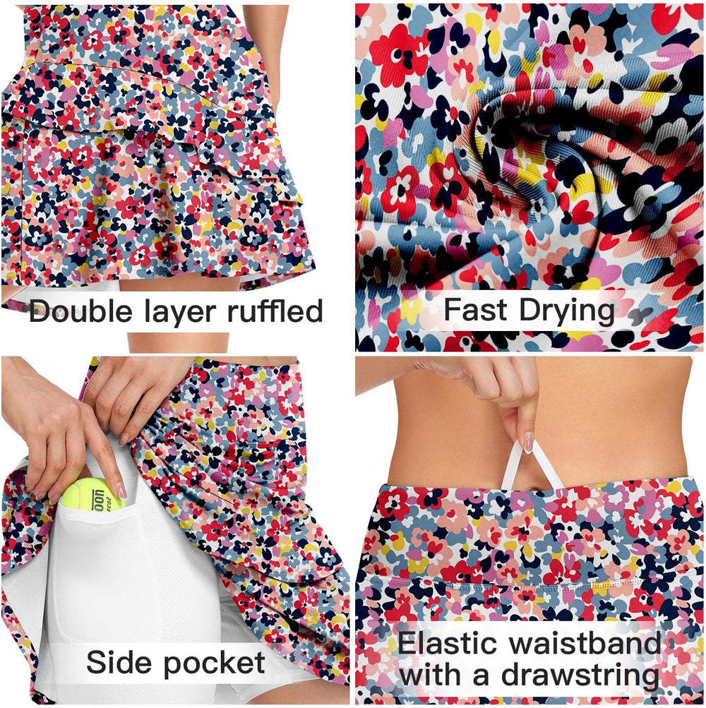 Soneven Hosenrock Damen Knielang Kurz Tennisrock Wanderrock Damen mit Innenhose Sport Rock Tennis Sk
