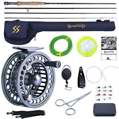 Sougayilang Fliegenfischer-Ruten-Kombinationen mit leichter, tragbarer Fliegenrute und CNC-gefräster