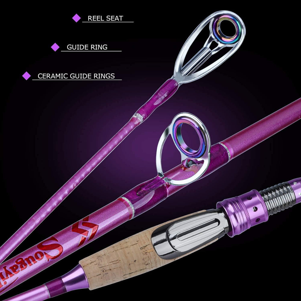 Sougayilang Angelrutenrolle Combo Tragbare Kohlefaser-Spinnangelrute und Bunte Spinnrolle für Reisen