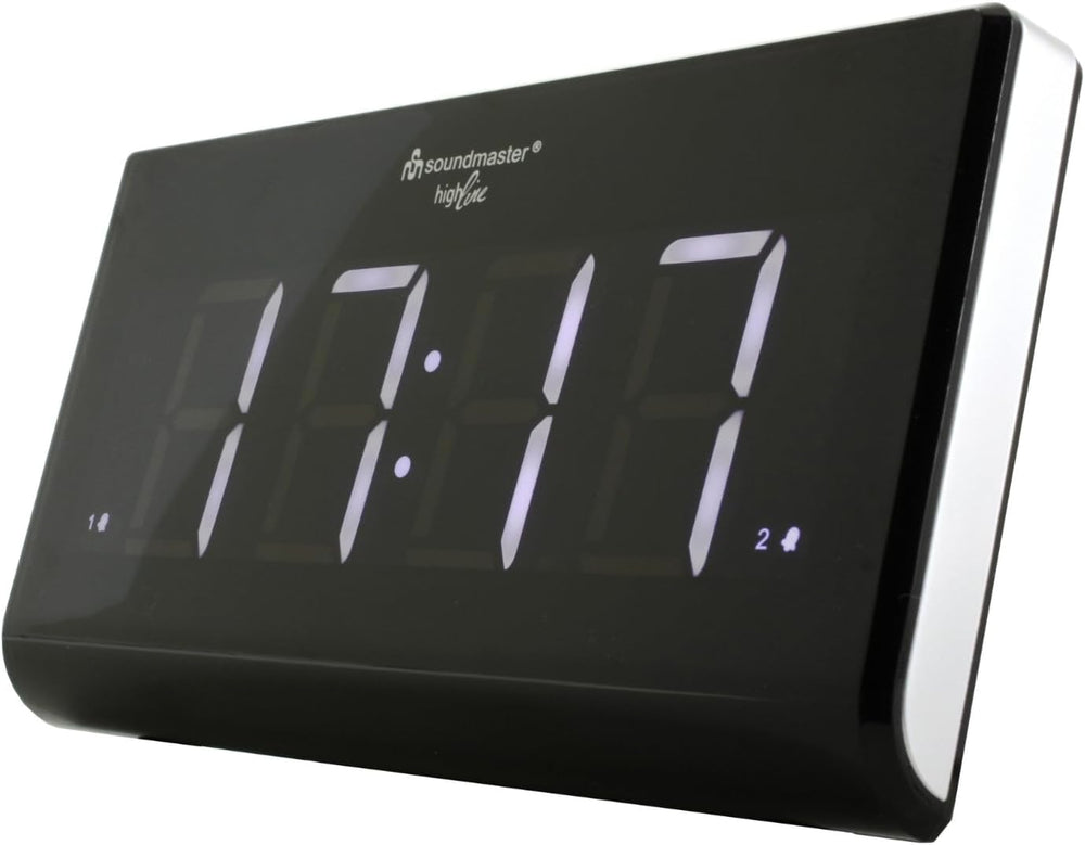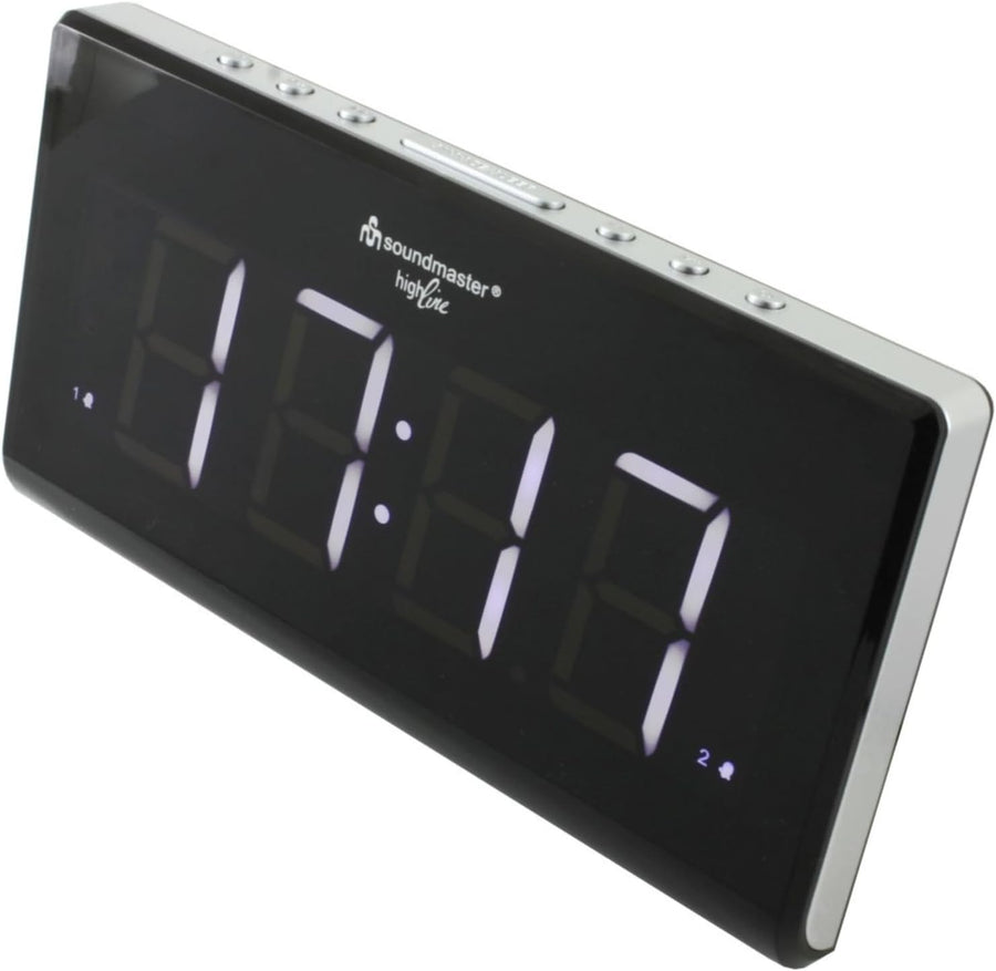 Soundmaster UR8400 Jumbo-LED-Alarm UKW-PLL Uhrenradio Radiowecker mit 2 Weckzeiten und dimmbaren Dis