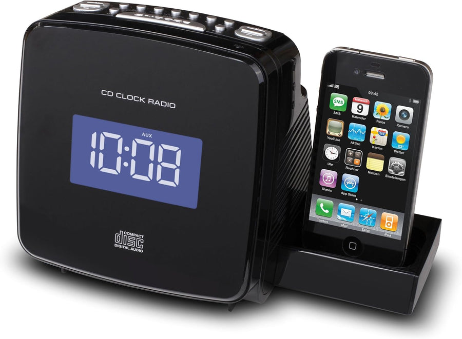 Soundmaster URD810IPH PLL-Uhrenradio mit MP3-CD/Apple iPod/iPhone Docking/Superkompakt
