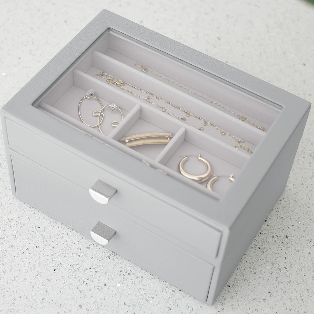 Stackers Pebble Grey Classic Jewellery Box - Set of 2 (with Drawers), Pebble Grey