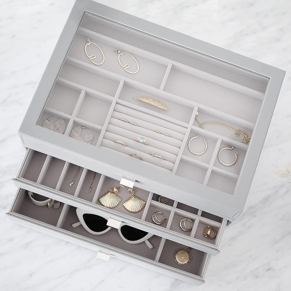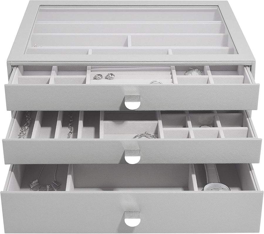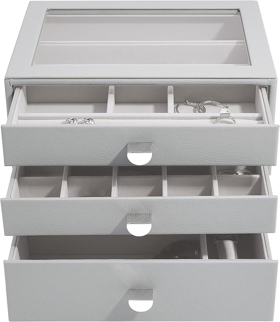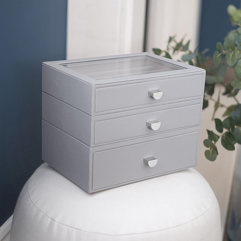 Stackers Pebble Grey Classic Jewellery Box - Set of 3 (with Drawers), Pebble Grey