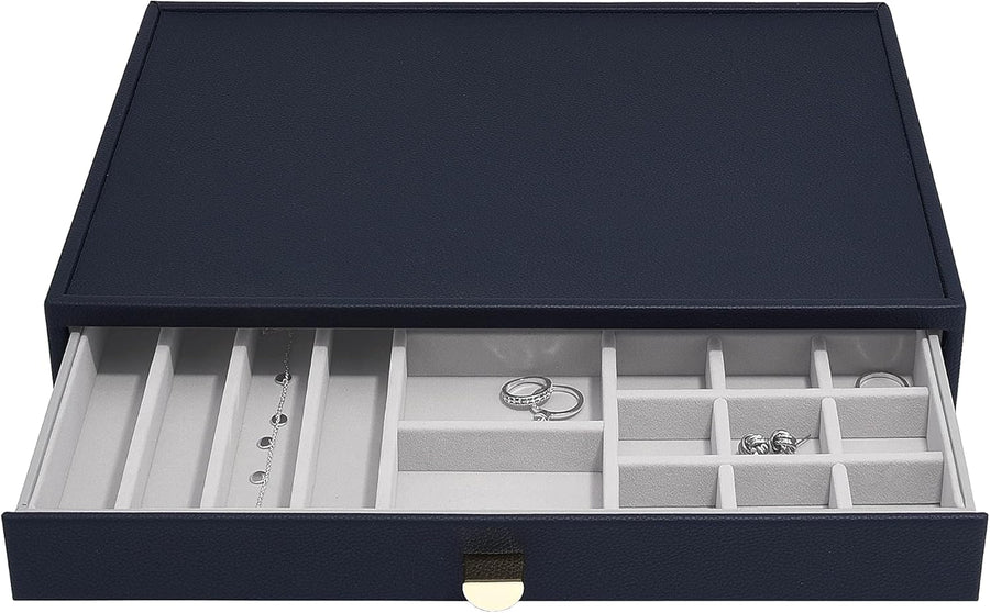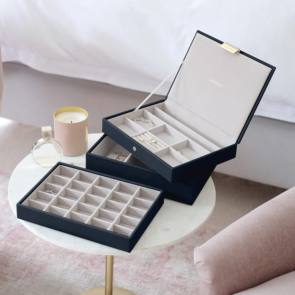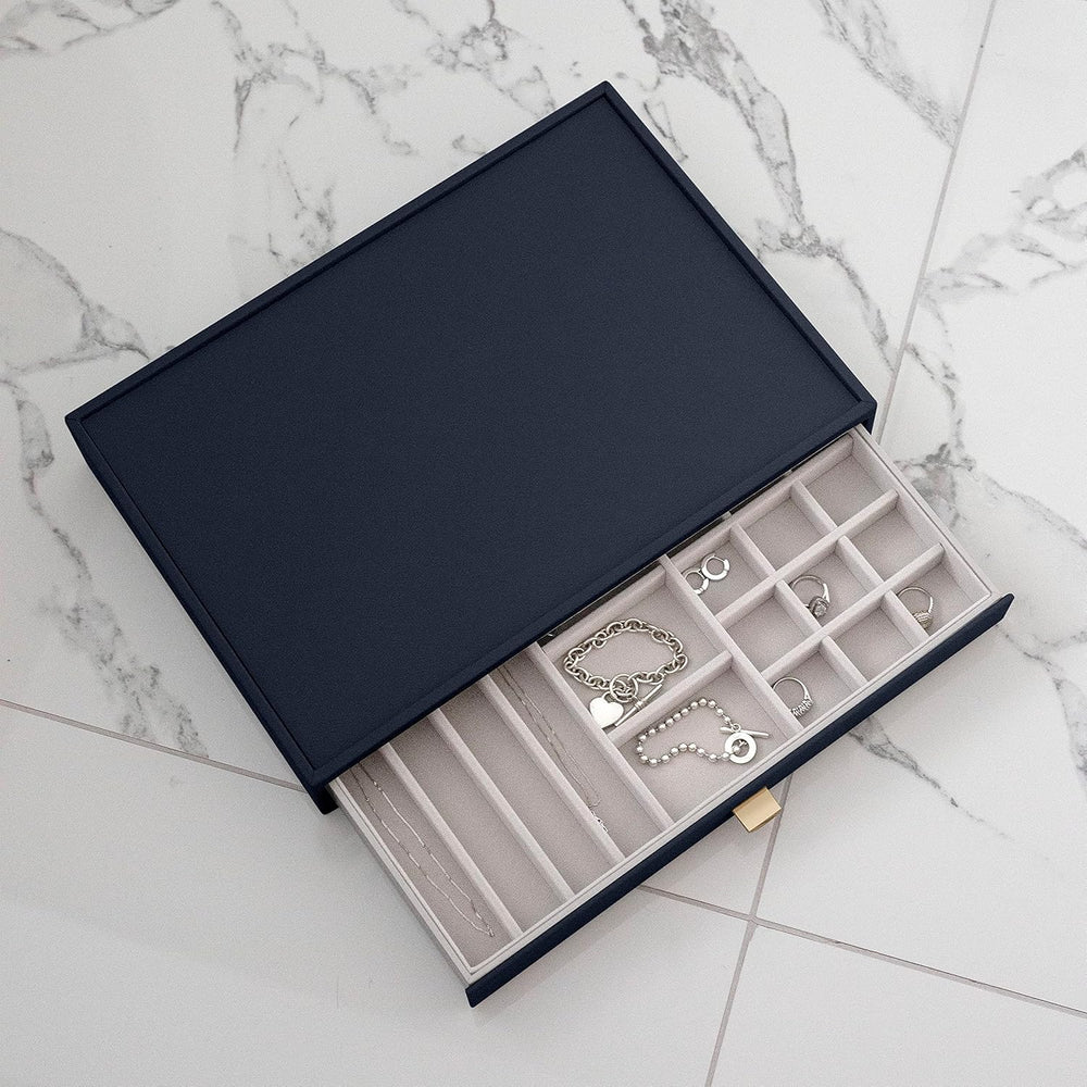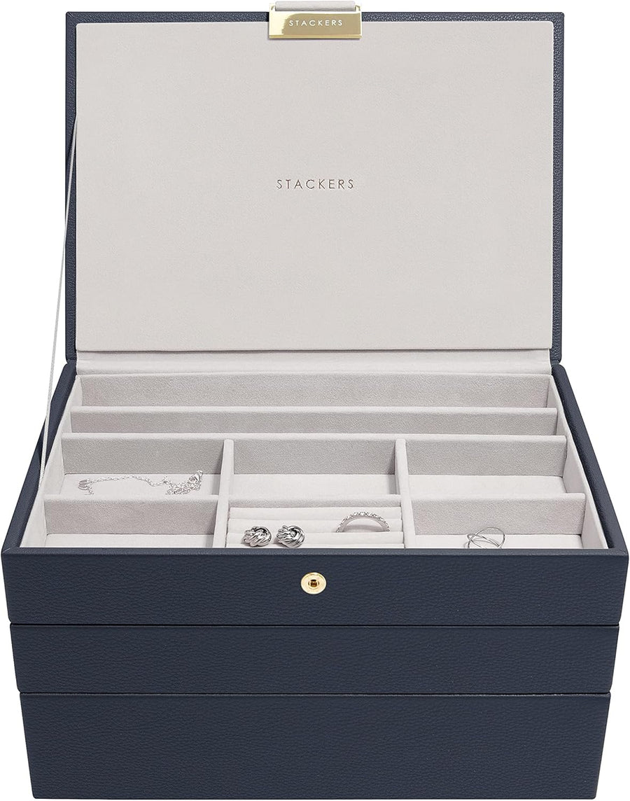 Stackers Navy Pebble Classic Jewellery Box - Set of 2 (with Drawers), Navy