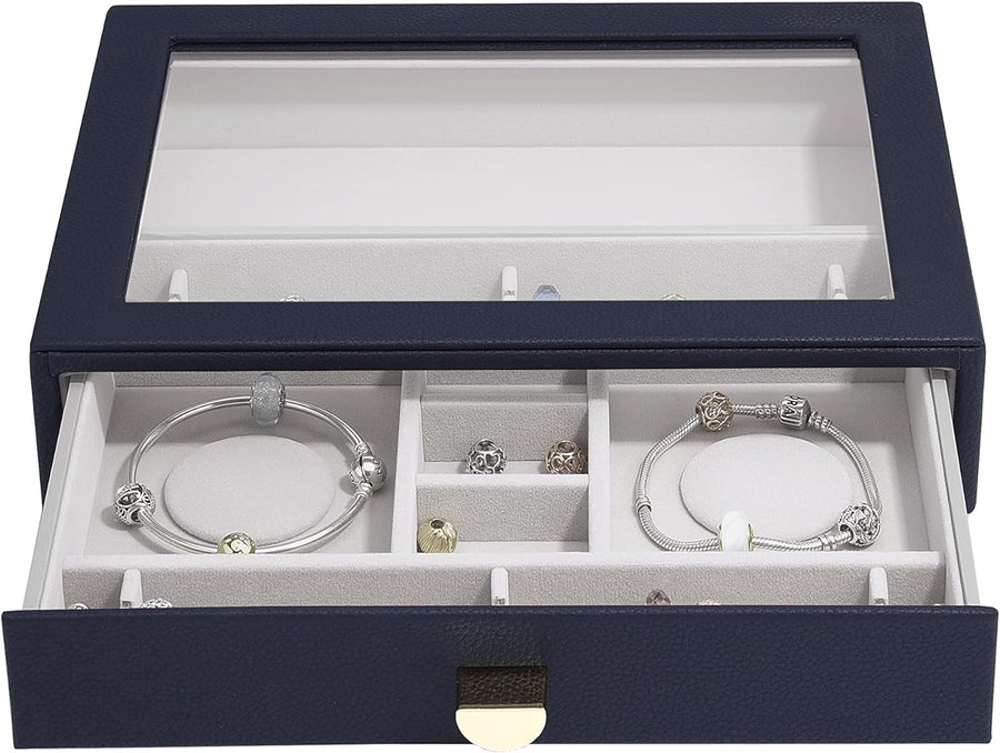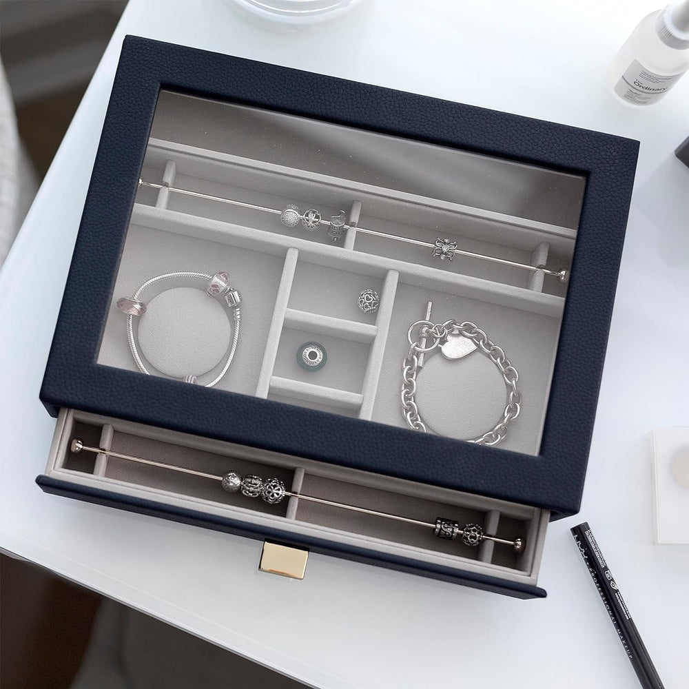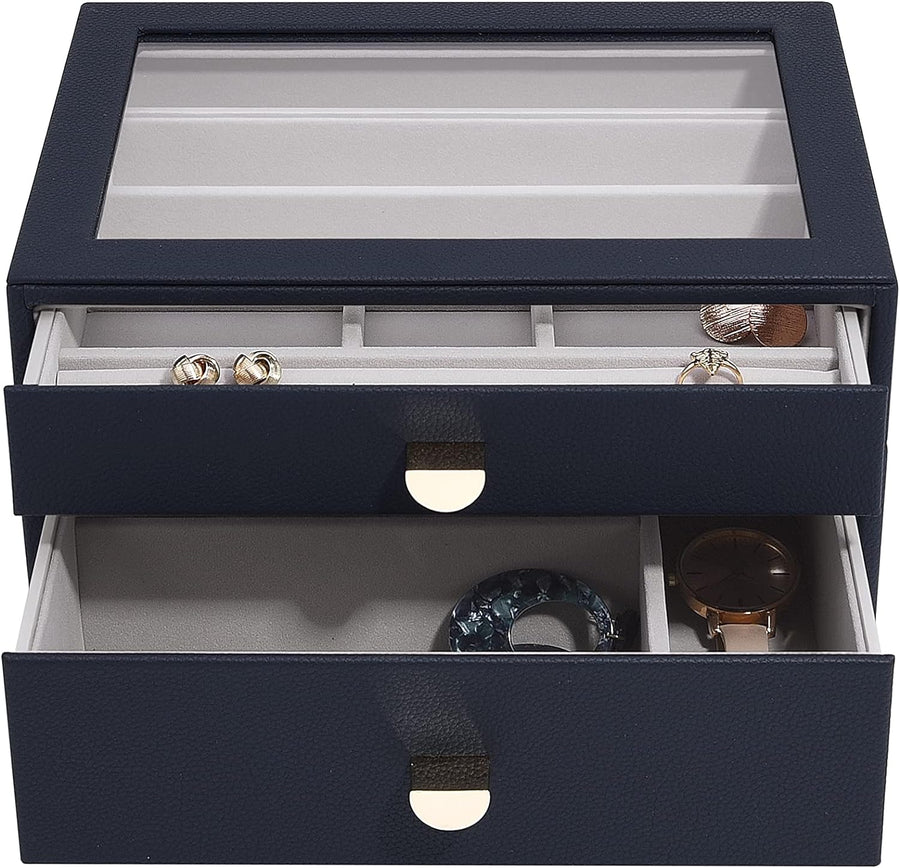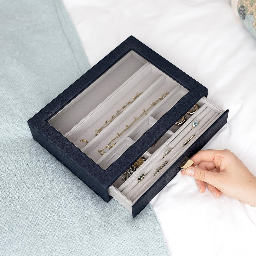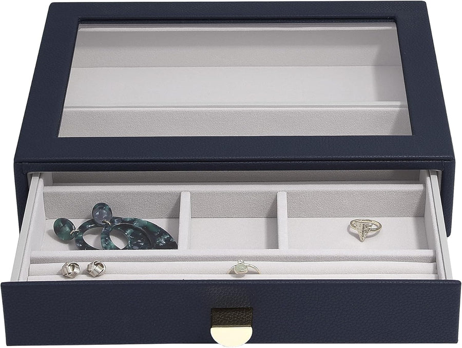 Stackers Navy Pebble Classic Jewellery Box - Set of 2 (with Drawers), Navy