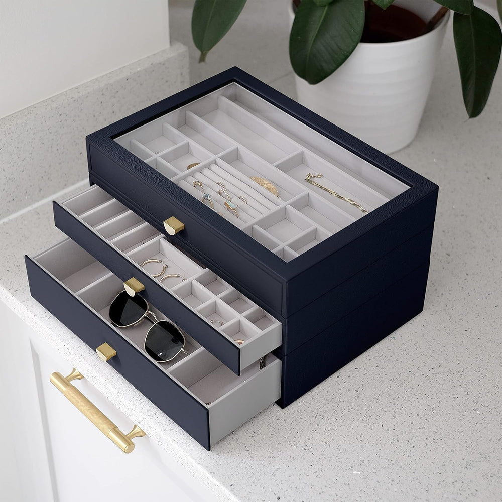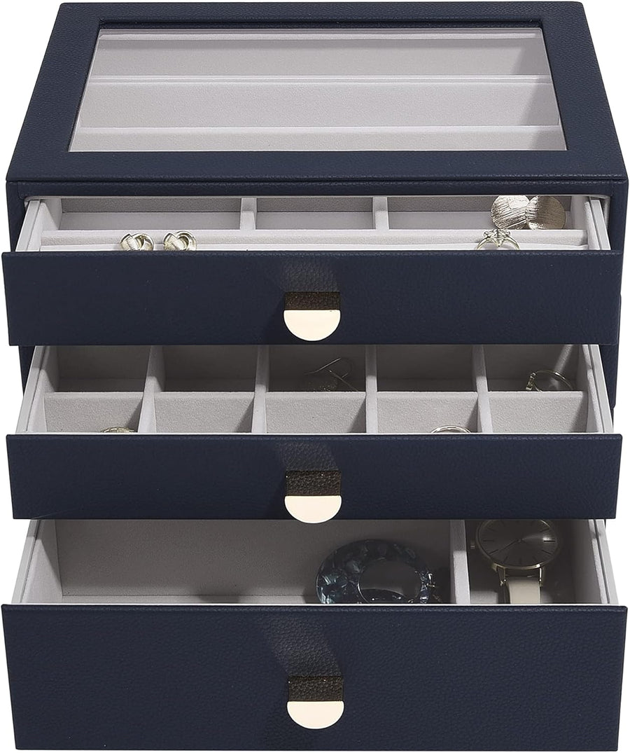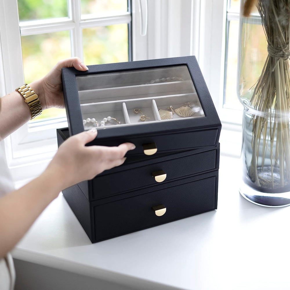 Stackers Navy Pebble Classic Jewellery Box - Set of 3 (with drawers), Navy