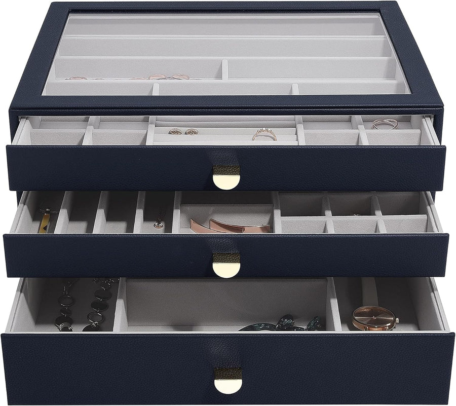Stackers Navy Pebble Supersize Jewellery Box - Set of 3 (with Drawers), Navy