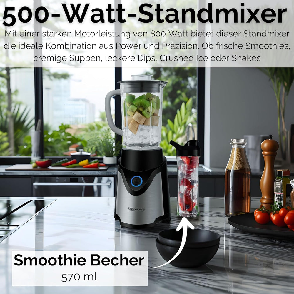 Steinborg® Standmixer Glas Edelstahl 800 Watt 1,5 Liter Glaskrug Universal Power Mixer Smoothie Make