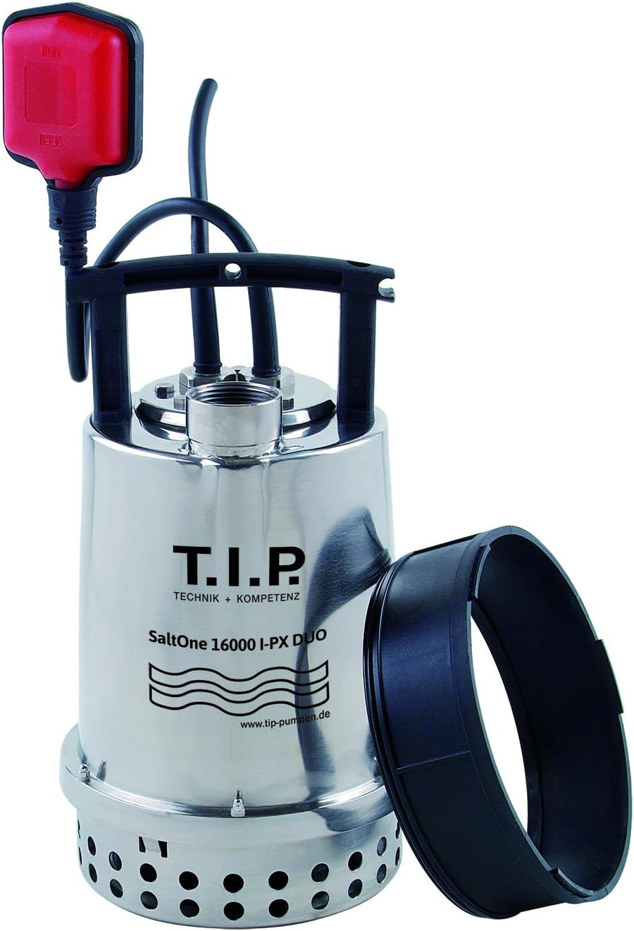 T.I.P. Schmutzwasser Tauchpumpe Edelstahl mit Duo-Ring (20.000 l/h Fördermenge, 1 mm Flachabsaugend,