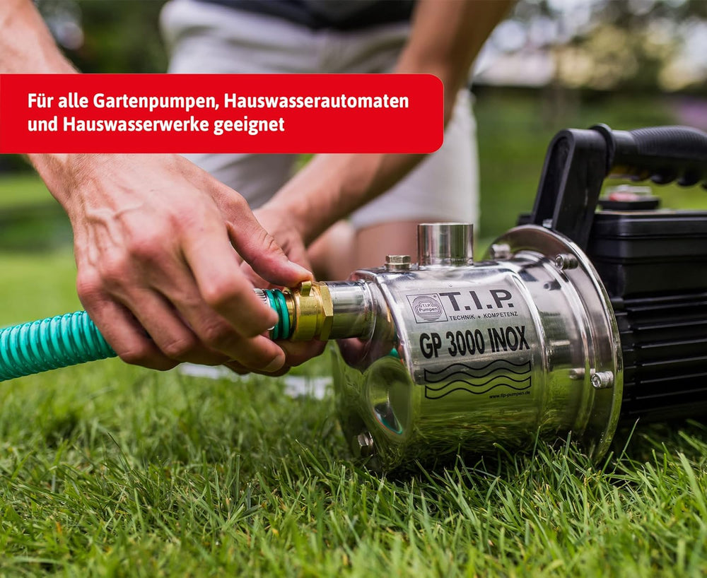T.I.P. Peripher-Gartenpumpe Guss GPP 2100 M + T.I.P. Saugschlauch Ansaugschlauchgarnitur Messing För