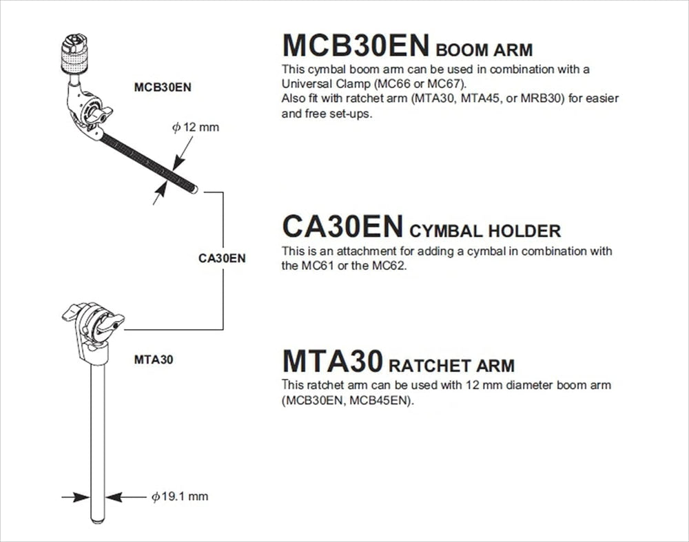 TAMA MCA53 Cymbal Stand with Precision Gear Tilter 30 cm Arms' Length