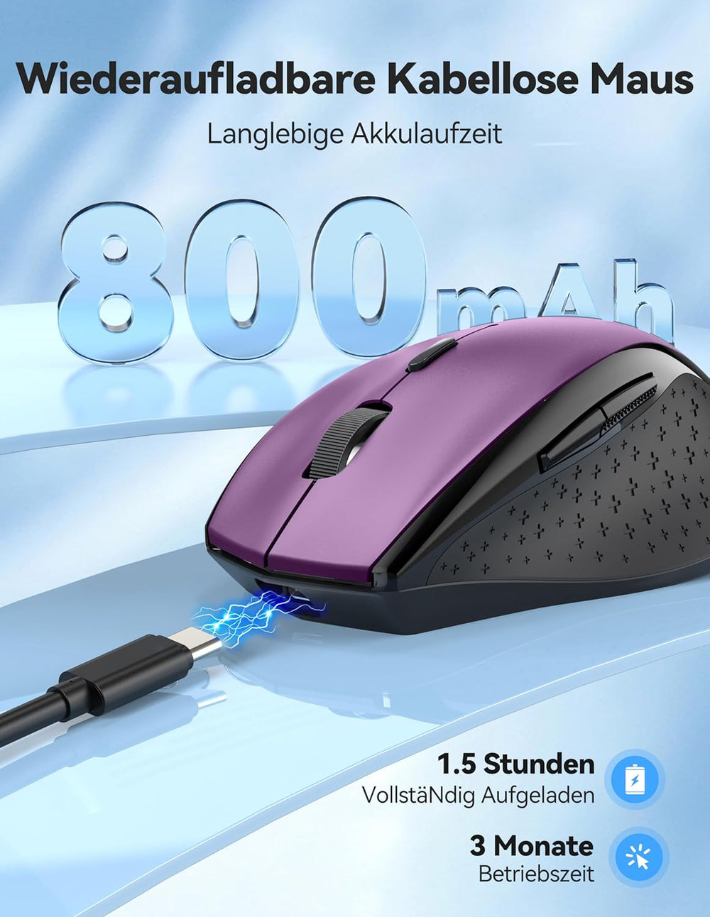 TECKNET PRO Kabellose Maus Wiederaufladbar, Silent Funkmaus 6400 DPI, 2,4 GHz Computermaus, Ergonomi