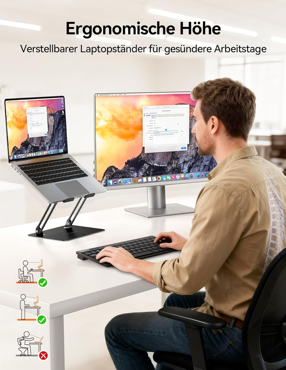 TECKNET Laptop Ständer, Faltbarer Laptopständer, Ergonomischer Laptop Stand, Laptophalter aus Metall
