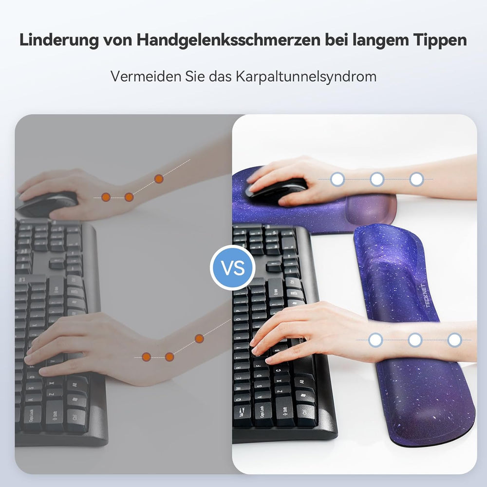 TECKNET Mauspad mit Handauflage, Gelkissen Mousepad und Ergonomische Memory Foam Tastatur Handgelenk