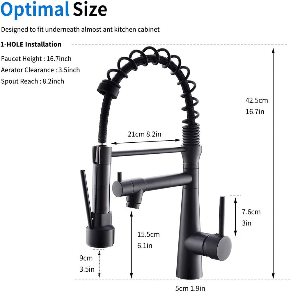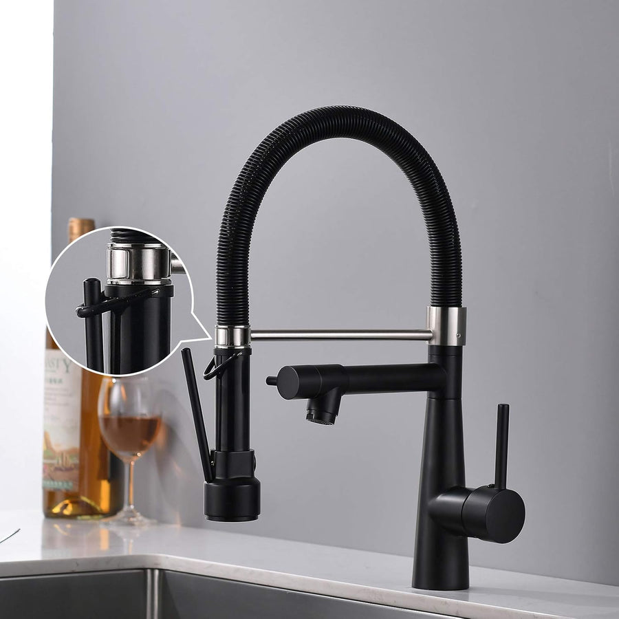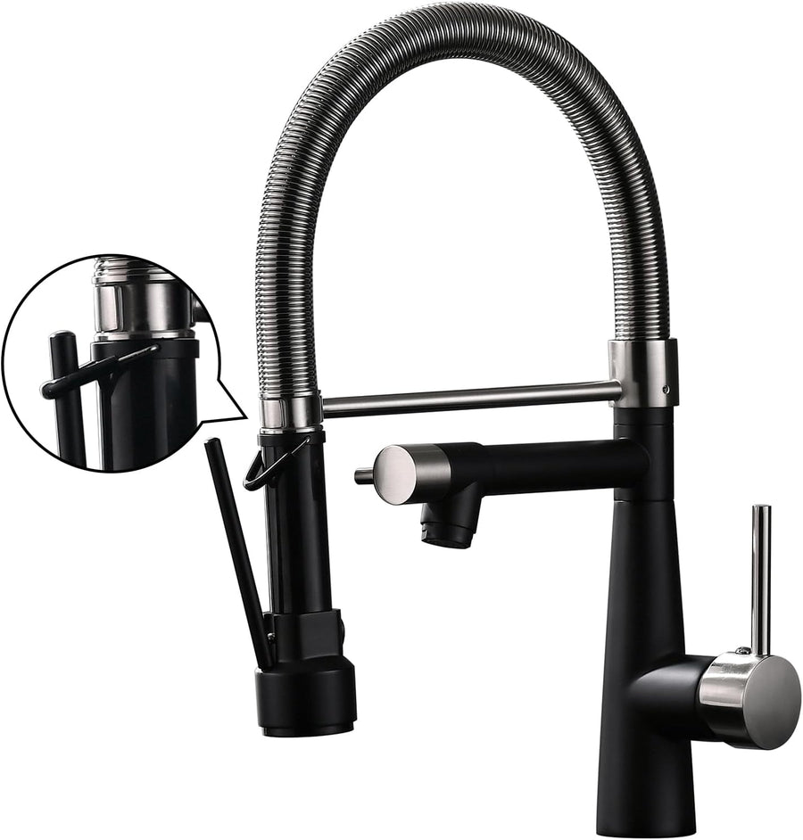 TIMACO Wasserhahn Küche Schwarz - 360° schwenkbar mit Spiralfeder Brause ausziehbar Gastro Hochdruck