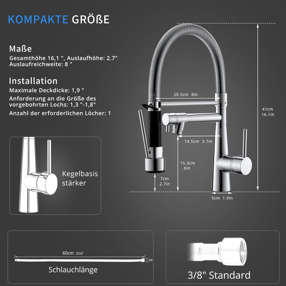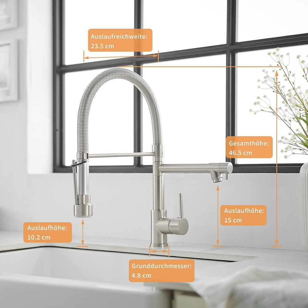 TIMACO Wasserhahn Küche 360° Drehbar Küchenarmatur Mischbatterie Küche Armatur Küche Spiralfederarma