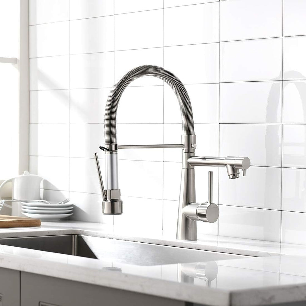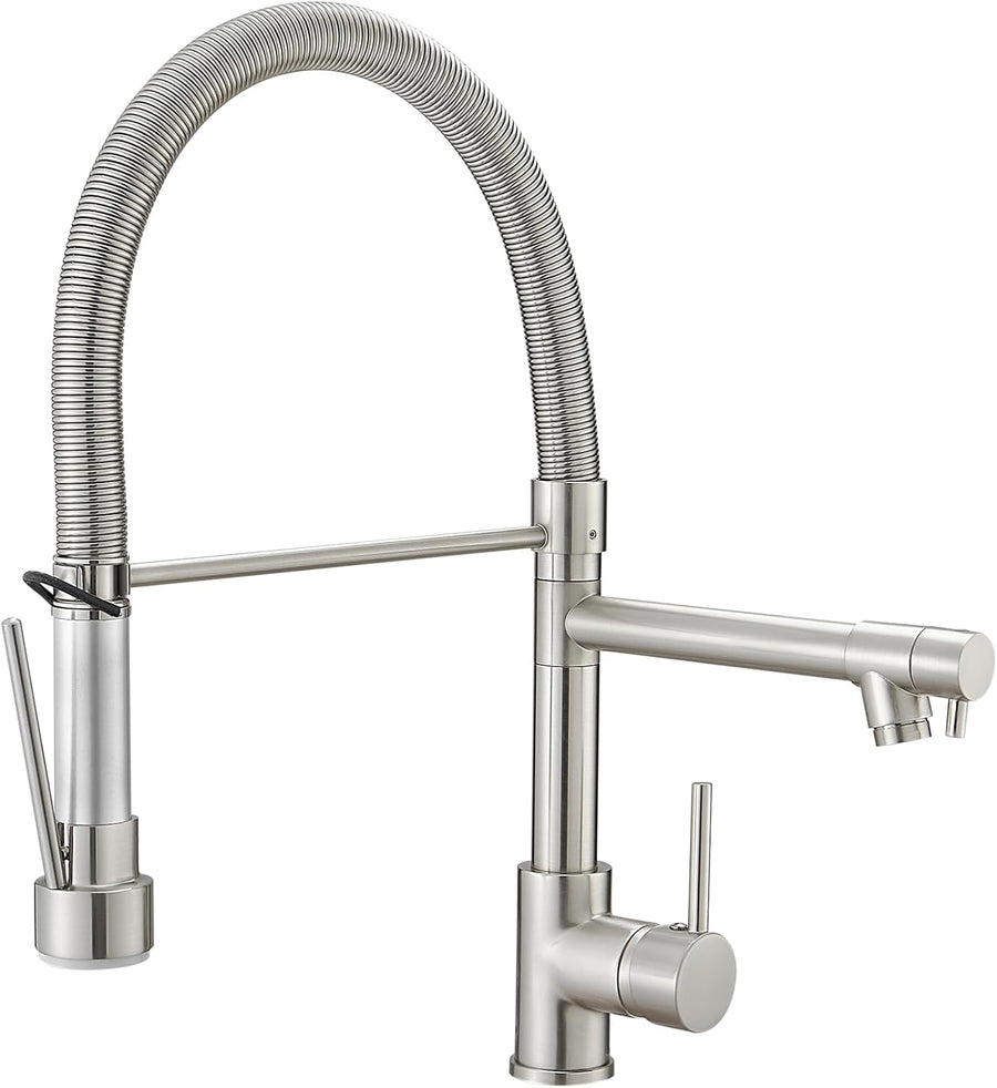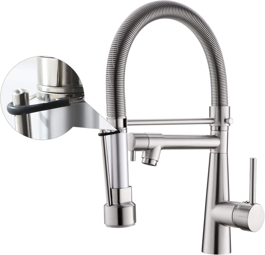 Timaco Wasserhahn Küche Einhandmischer für Küchen Spüle Gebürsteter Nickel Geschirrbrause Federbraus