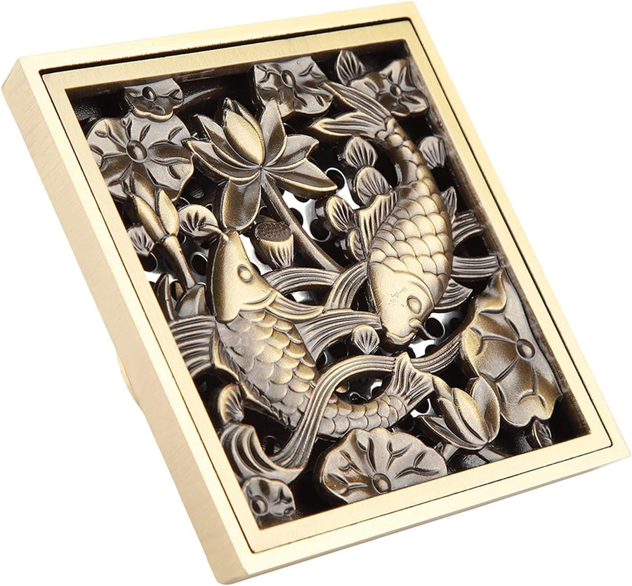 TOPINCN Bodenablauf,10cm Bad Dusche Bodenablauf Antiquität Messing Ablassen Siebdeckel Gitter Quadra