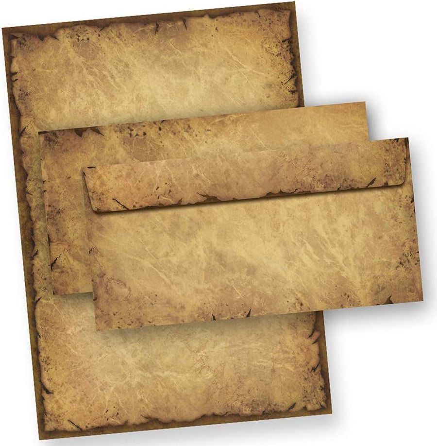 CASANOVA Briefpapier mit Umschlag Vintage 25 Sets Papier beidseitig A4 alt retro Mittelalter antik n