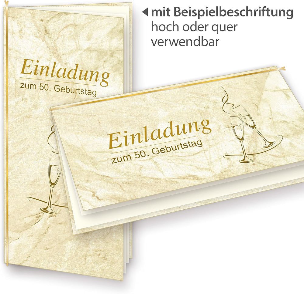 Einladungskarten Marmor (50 Sets) zum Selbst-gestalten, mit Einlegeblätter + Goldbänder, für Geburts