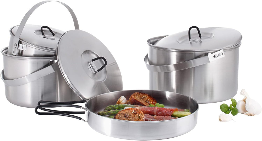 Tatonka Family Cook Set L (4-teilig) - Camping-Kochgeschirr aus Edelstahl - Bestehend aus einer Pfan