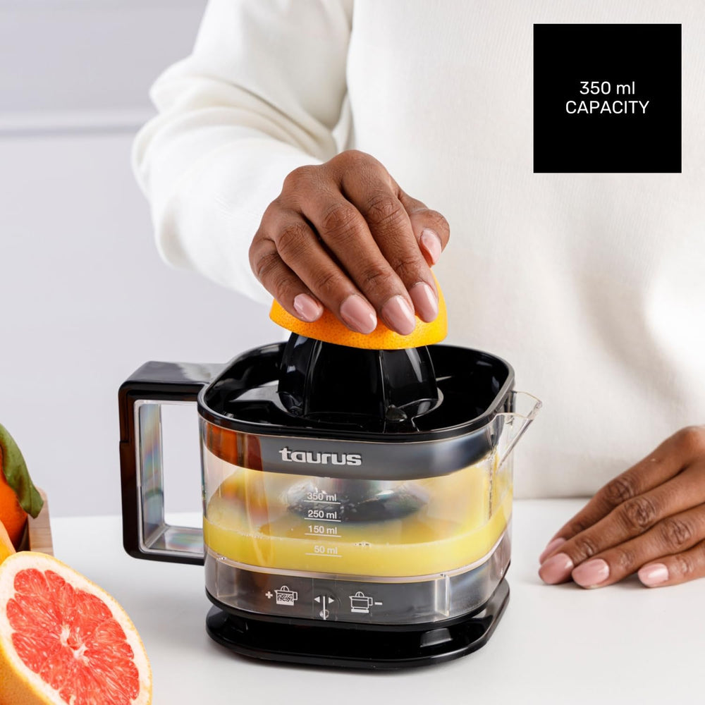 Taurus TC-350 Elektrische Orangenpresse, 350 ml Saft, transparenter Krug, doppelte Drehrichtung, kom