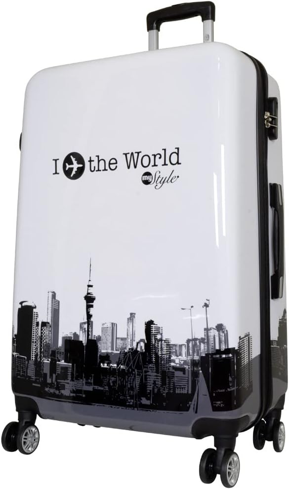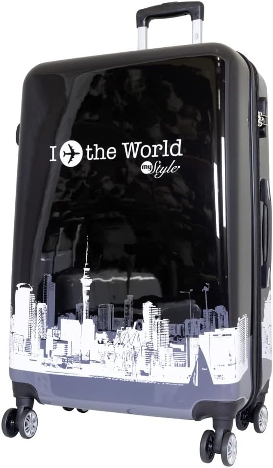 Trendyshop365 Reisekoffer Gross Hartschale mit Flugzeug Städtedesign Bedruckt 77cm 101 Liter 4 Rolle