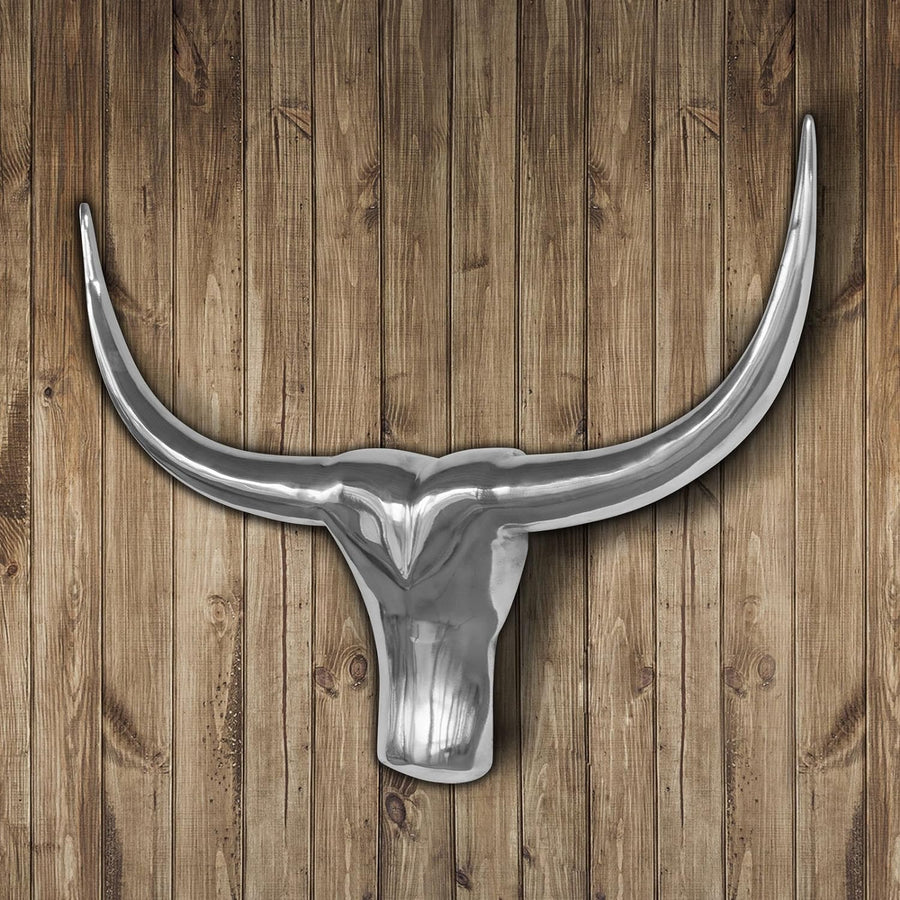 Trendyshop365 Stier Deko-Geweih aus poliertem Aluminium 52x40cm Trophäe Wanddeko