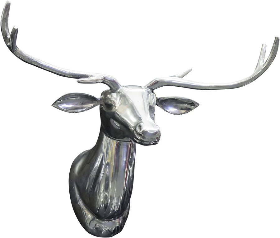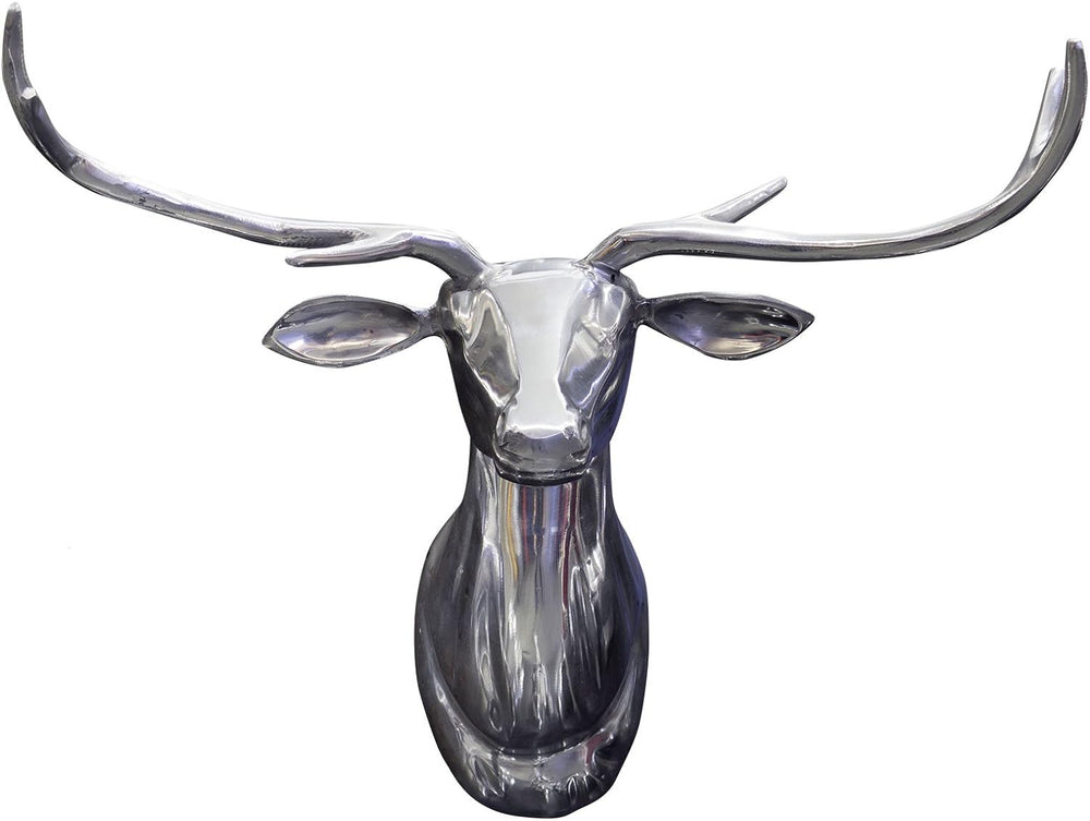 Trendyshop365 Vintage Shabby Chic Hirsch Deko-Geweih aus poliertem Aluminium 49x39x18cm Trophäe Wand