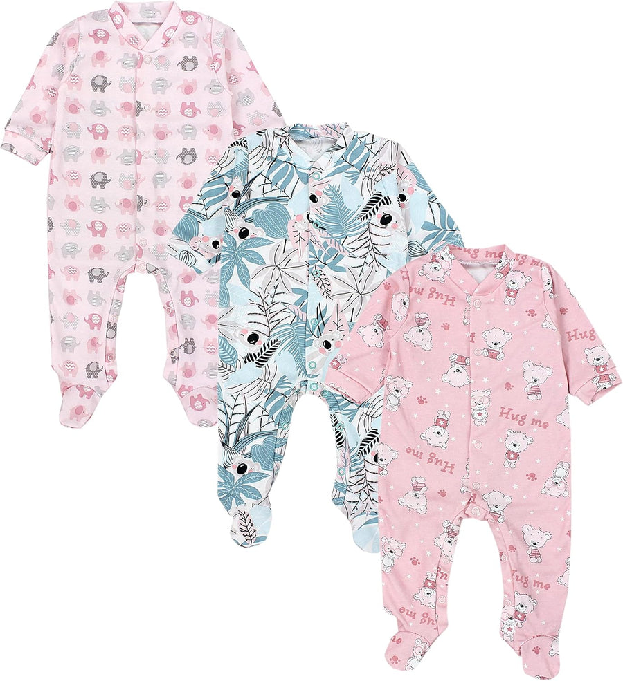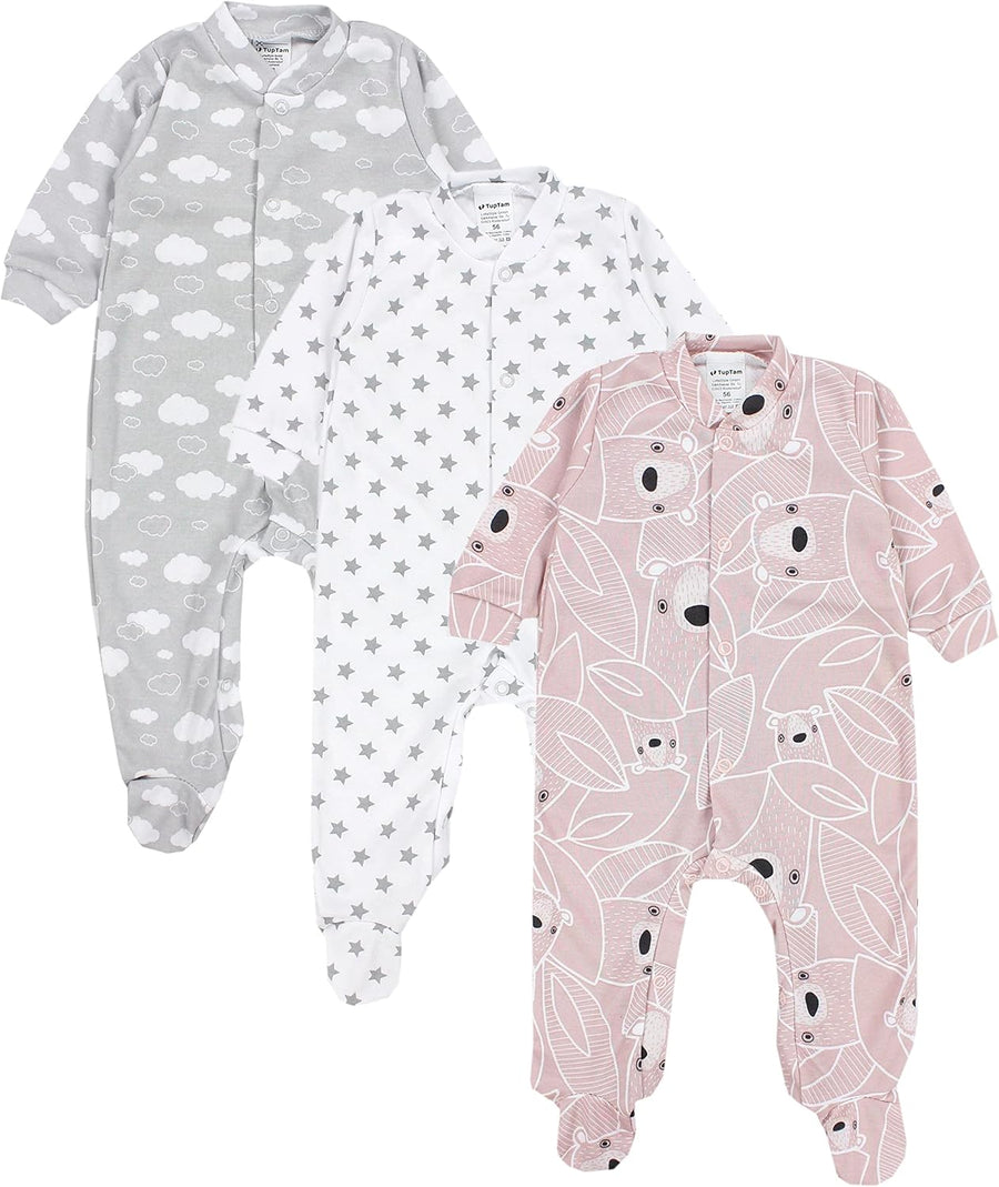TupTam Baby Mädchen Schlafstrampler mit Fuss 3er Pack 68 Farbenmix 1, 68 Farbenmix 1