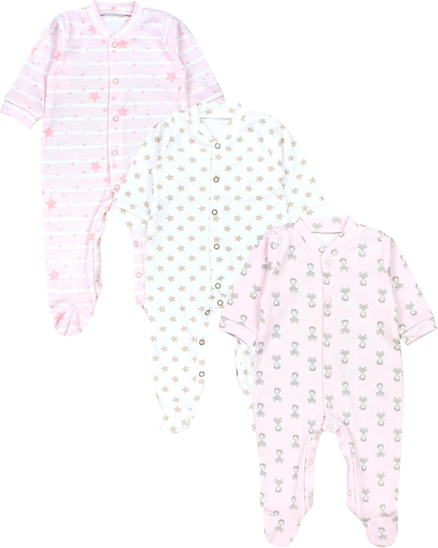 TupTam Baby Mädchen Schlafstrampler mit Fuss 3er Pack 80 Fuchs Rosa Streifen Sterne Beige, 80 Fuchs