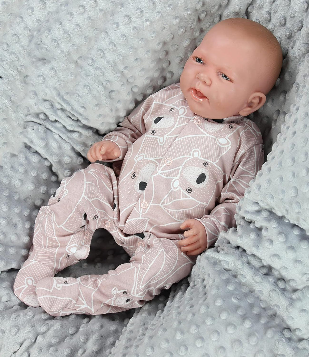 TupTam Baby Jungen Schlafstrampler mit Fuss 3-er Pack 86 Bärchen Sterne Beige, 86 Bärchen Stern