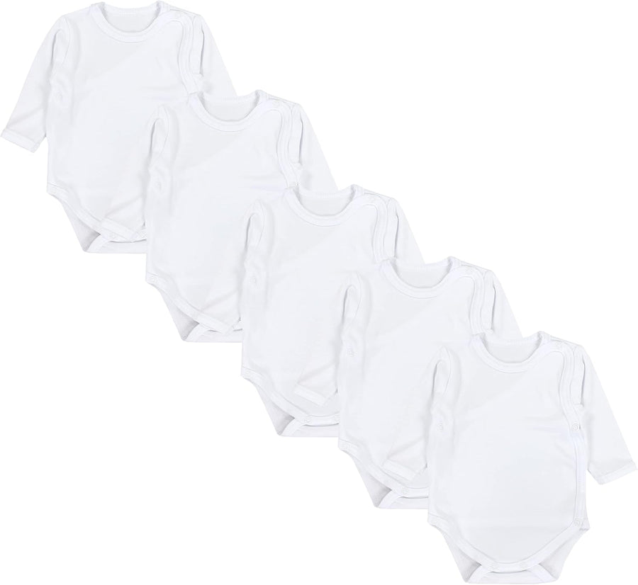 TupTam Baby Unisex Langarm Wickelbody Print/Uni 5er Pack 50 Weiss, 50 Weiss