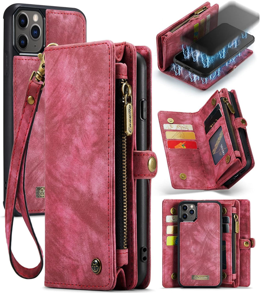 UFinetech Magnetische iPhone 11 Pro Hülle Tasche Design Leder TPU Bumper Flip Abnehmbar Flexibel Kar