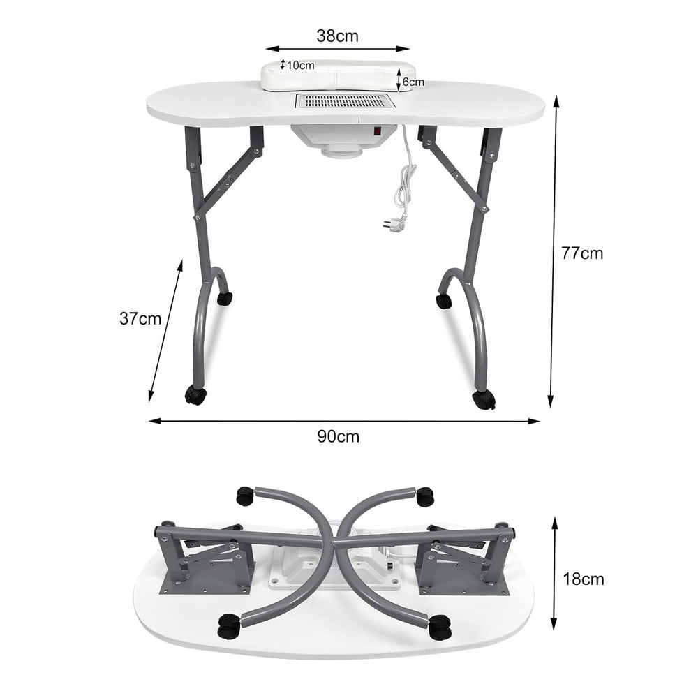 UISEBRT Faltbar Maniküretisch mit Absaugung Tragbarer Nageltisch Tragbaresmanikürtisch mit Rollen Mo