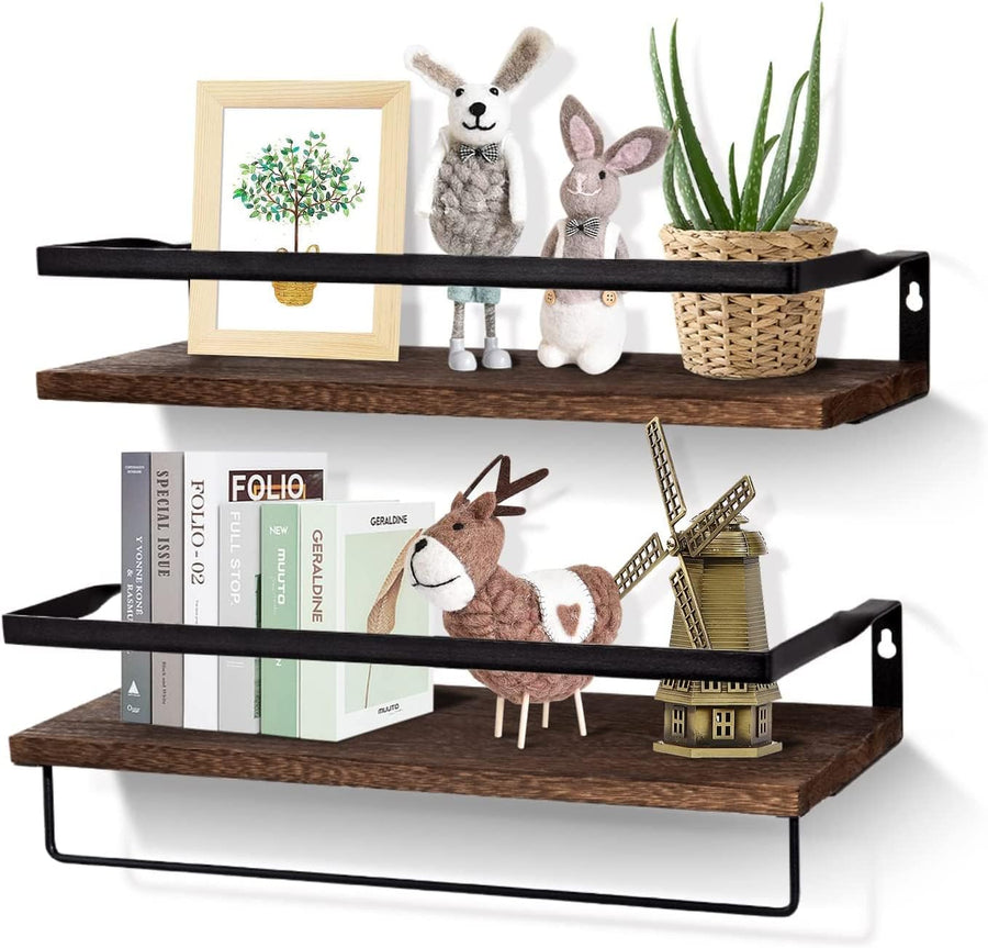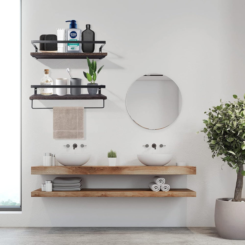 Uten Wandregal rustikales Schweberegal Holz Metall mit Handtuchhalter, 2er Set, zur Wandmontage für