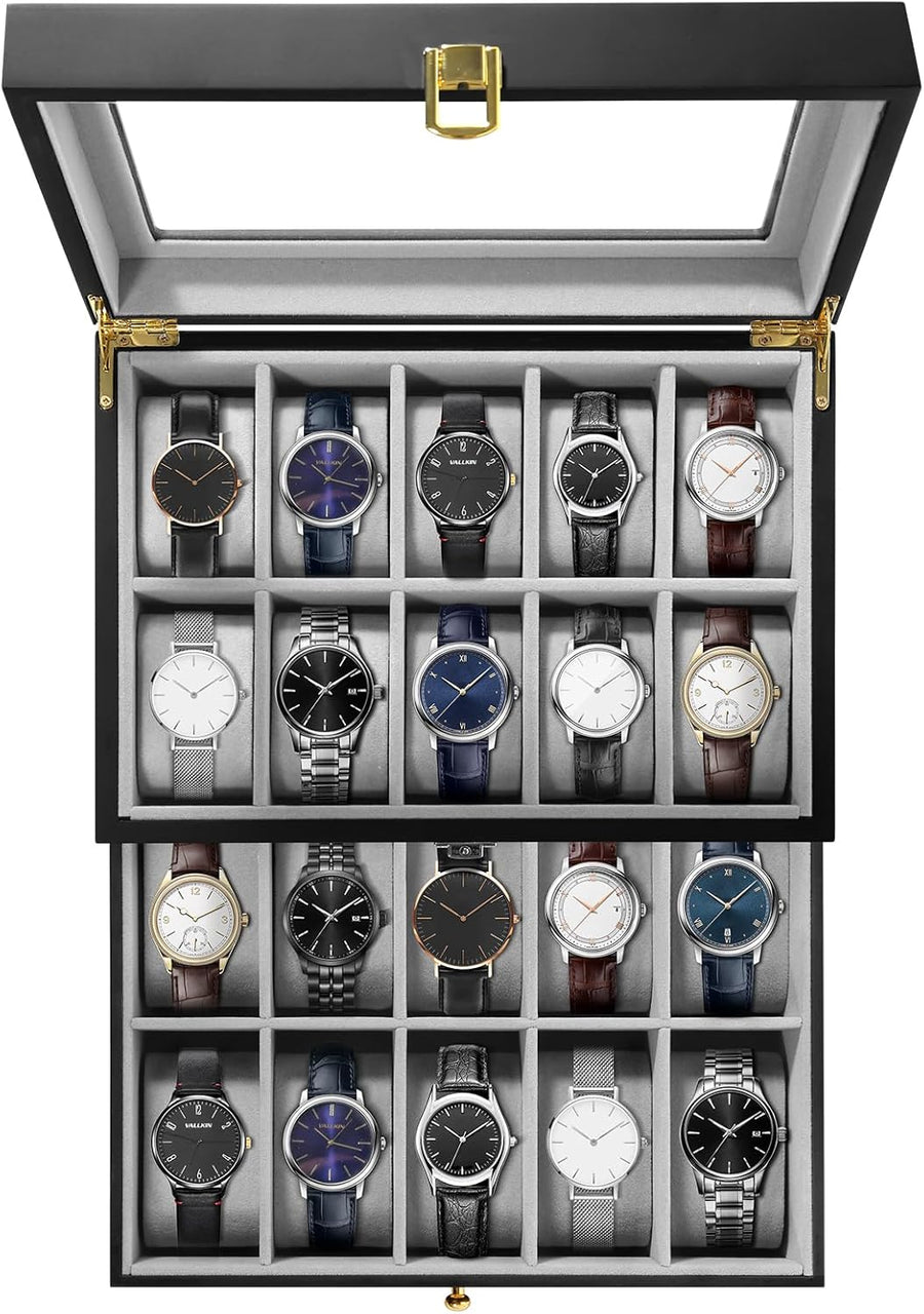 Uten Uhrenkasten 24 Uhren, Uhrenbox Herren Aufbewahrungsbox mit Metallschloss, Schlüssel und herausn