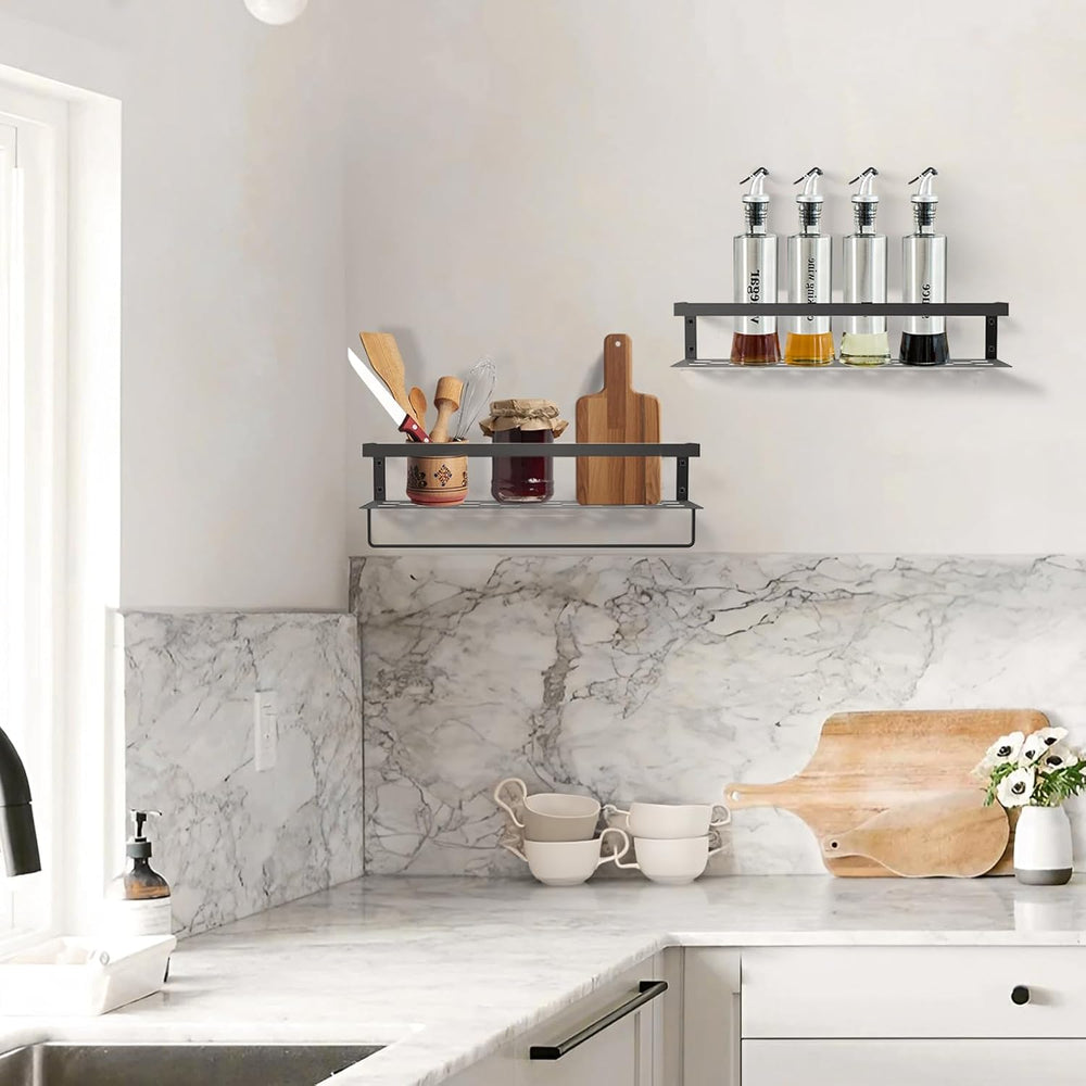 Uten Wandregal Metall, Bad Regal Kücheregal 2er Set, Metallregal Wand 40cm mit Handtuchhalter, für W