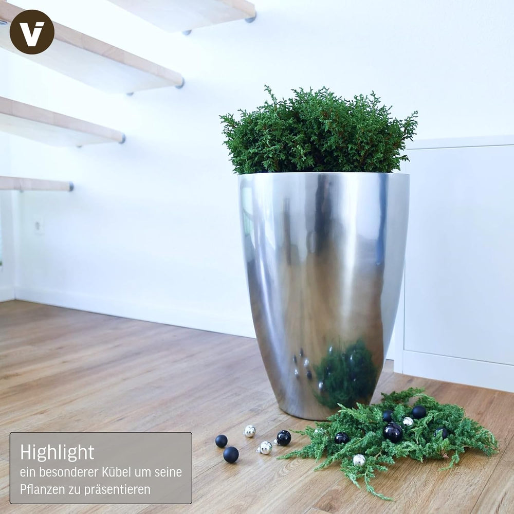 VIVANNO Pflanzkübel Pflanzgefäss Vase Kübel exklusiv Deluxe Schwarz, Silber Hochglanz Schwarz Silber
