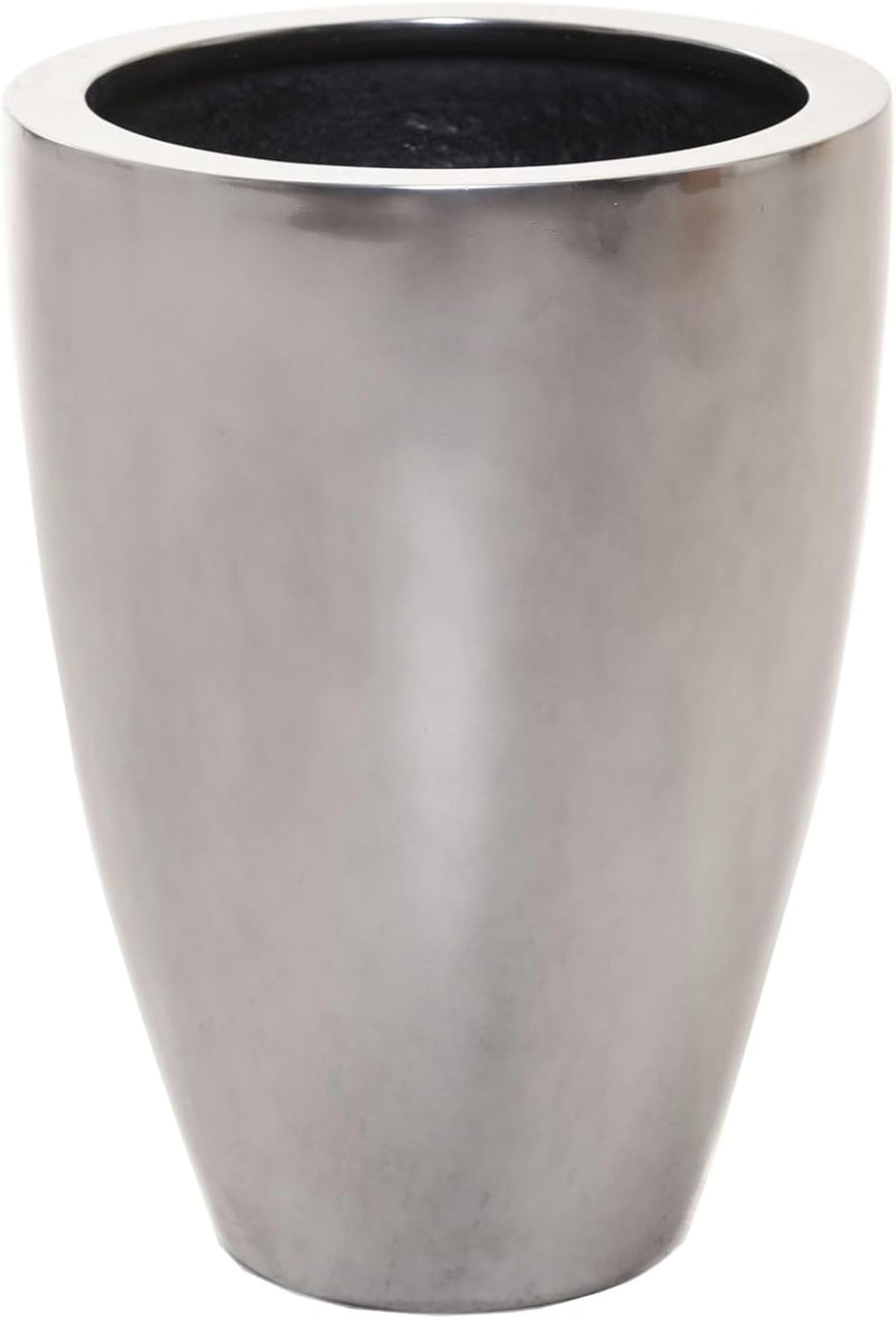 VIVANNO Pflanzkübel Pflanzgefäss Blumenkübel Fiberglas Silber Metallic OPALA (55x40), Silber Metalli