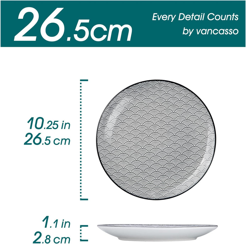 vancasso, Takaki 4-teilig Flachteller aus Porzellan, Ø 27 cm Grosse Speiseteller, Teller Set 4-teili