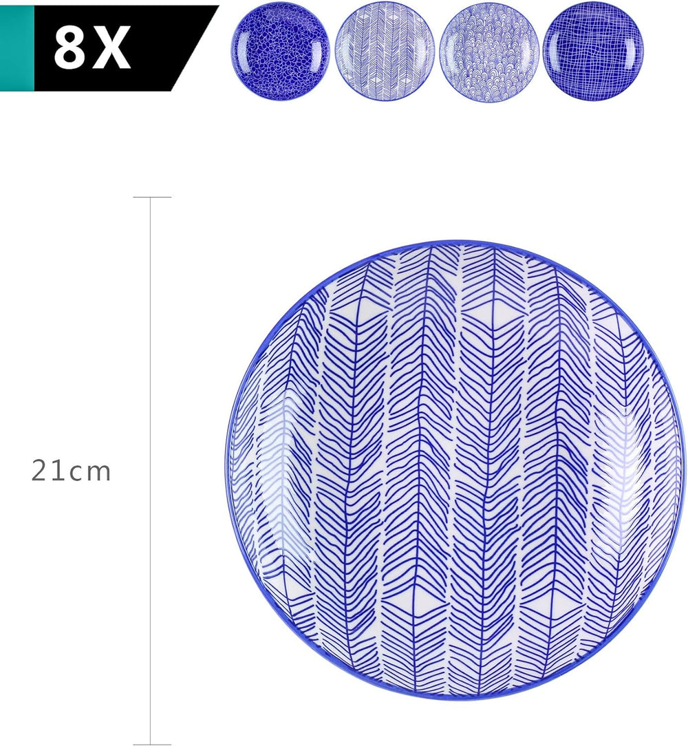 vancasso, Haruka 8 teilig Porzellan Dessertteller Set, Durchmesser 21,5 cm Rund Kuchenteller, Frühst