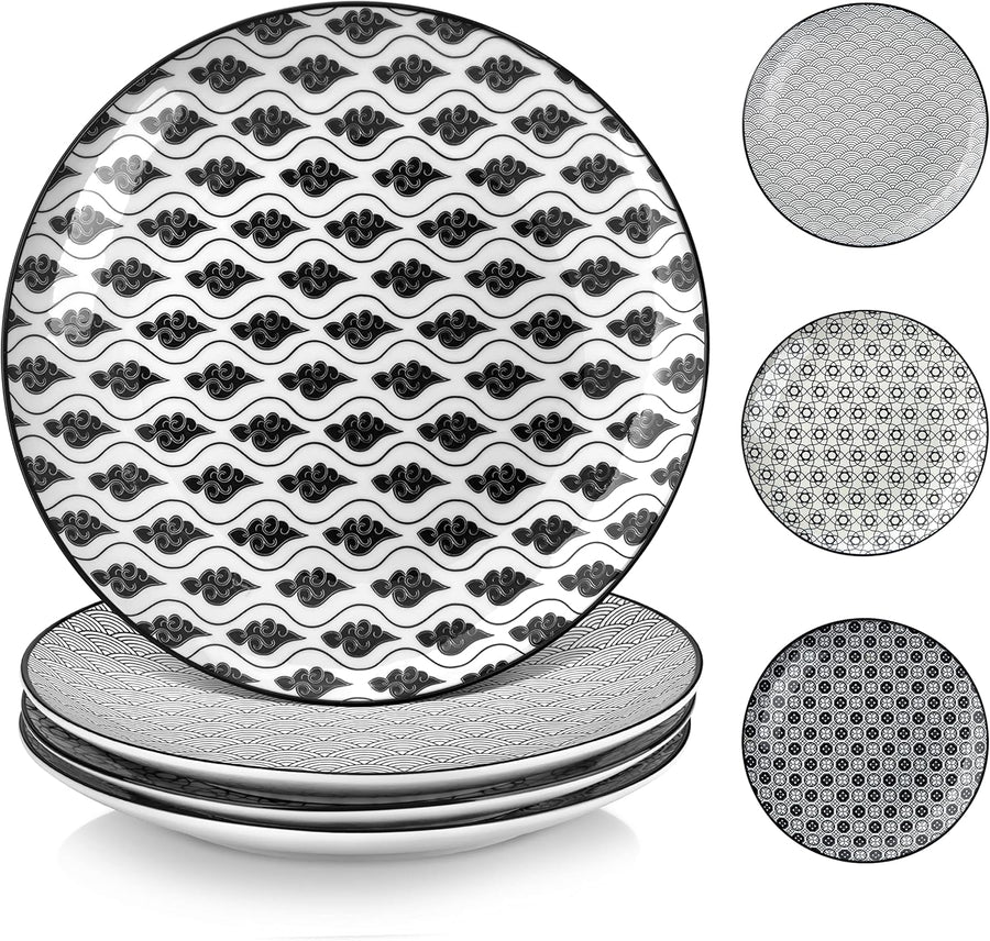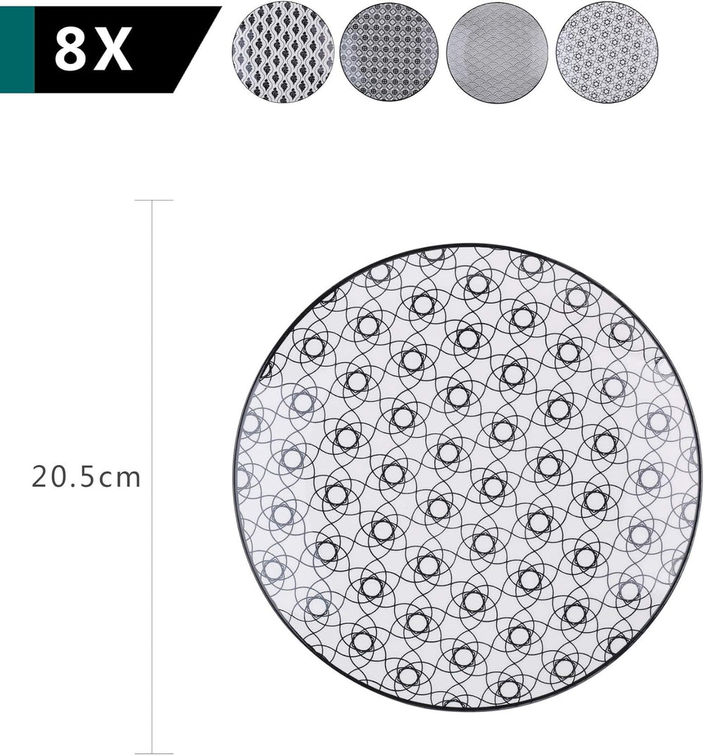 vancasso, Haruka 8 teilig Porzellan Speiseteller Set, Ø 26,5 cm Flachteller für Tafelservice, Schwar
