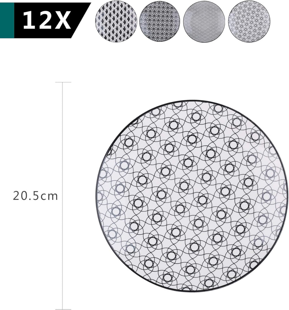 vancasso, Haruka Porzellan Dessertteller, 12-teilig Set, Durchmesser 21,5 cm Rund Kuchenteller, Brot
