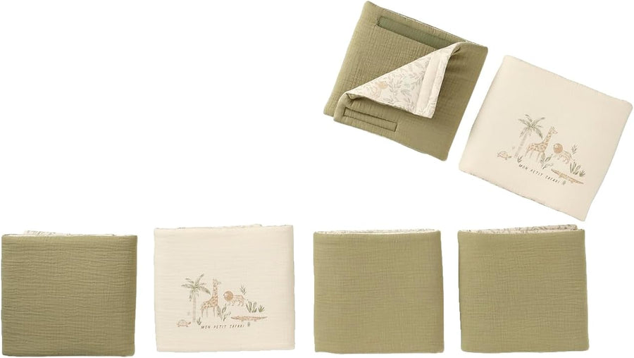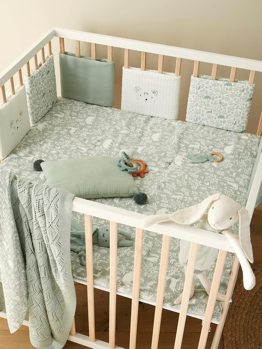 VERTBAUDET Bettumrandung / Laufgitterumrandung, Stossstange, wendbar, Babylon Beige, bedruckt mit TU
