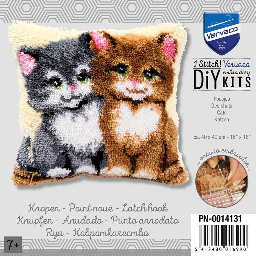 Vervaco Knüpfkissen 2 Katzen Knüpfpackung, Baumwolle, Mehrfarbig, 40 x 40 x 0,3 cm